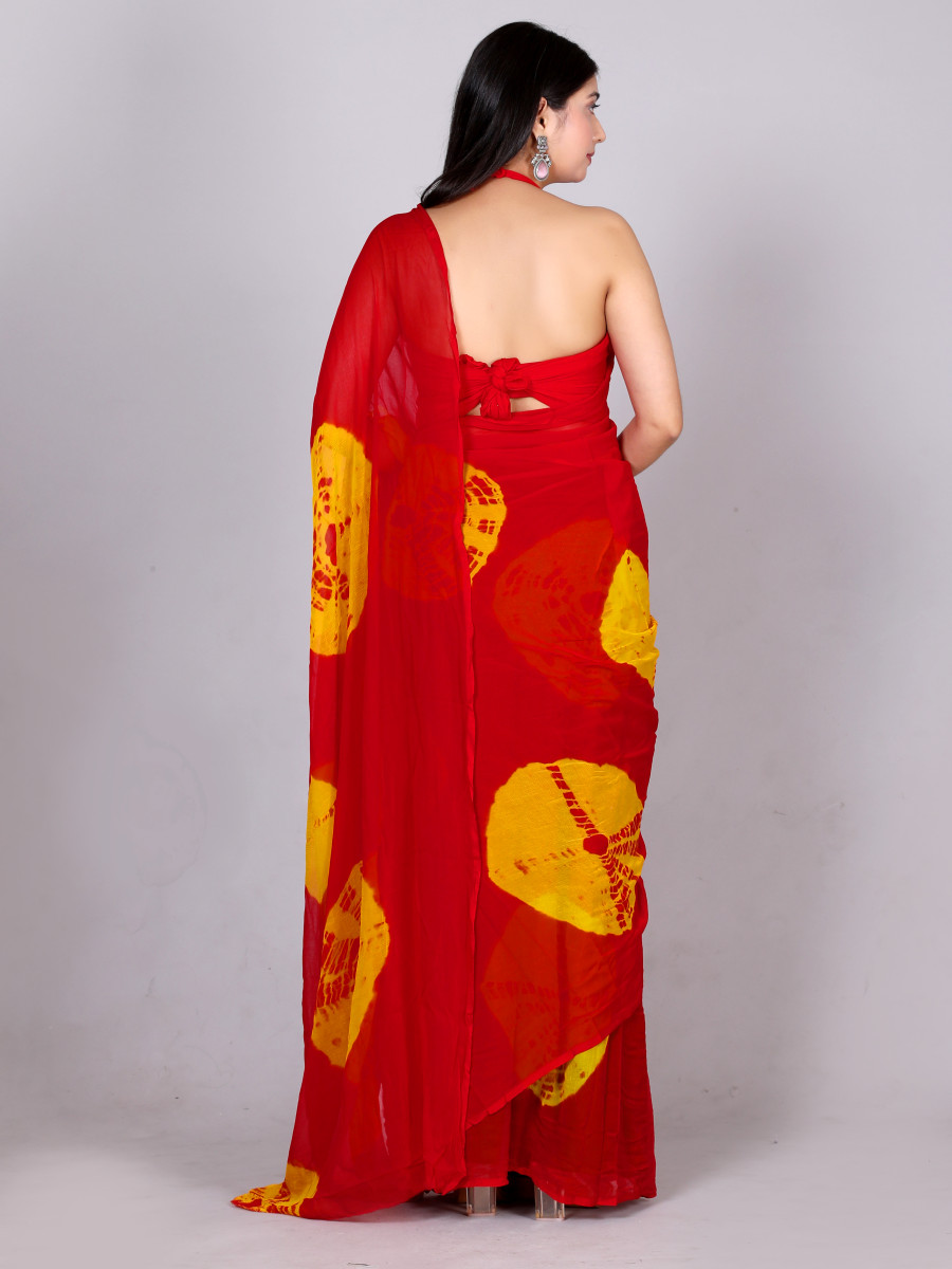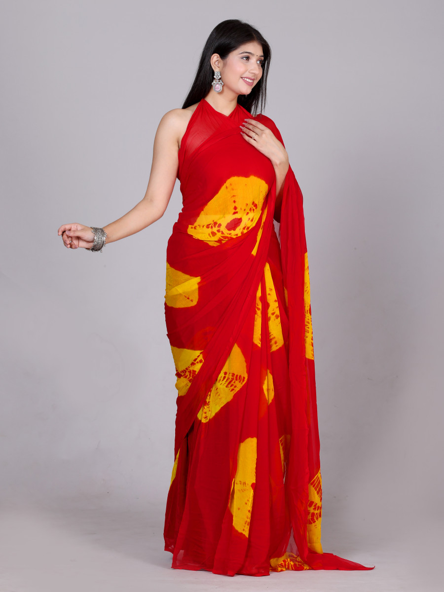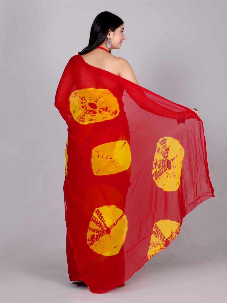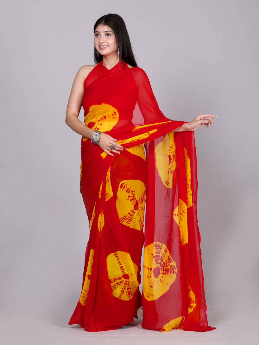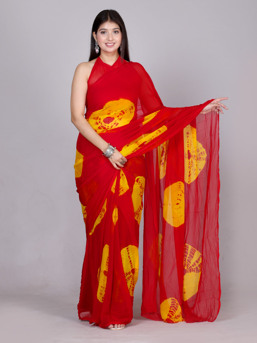 Bandhani Printed Chiffon Printed Red sarees For Women