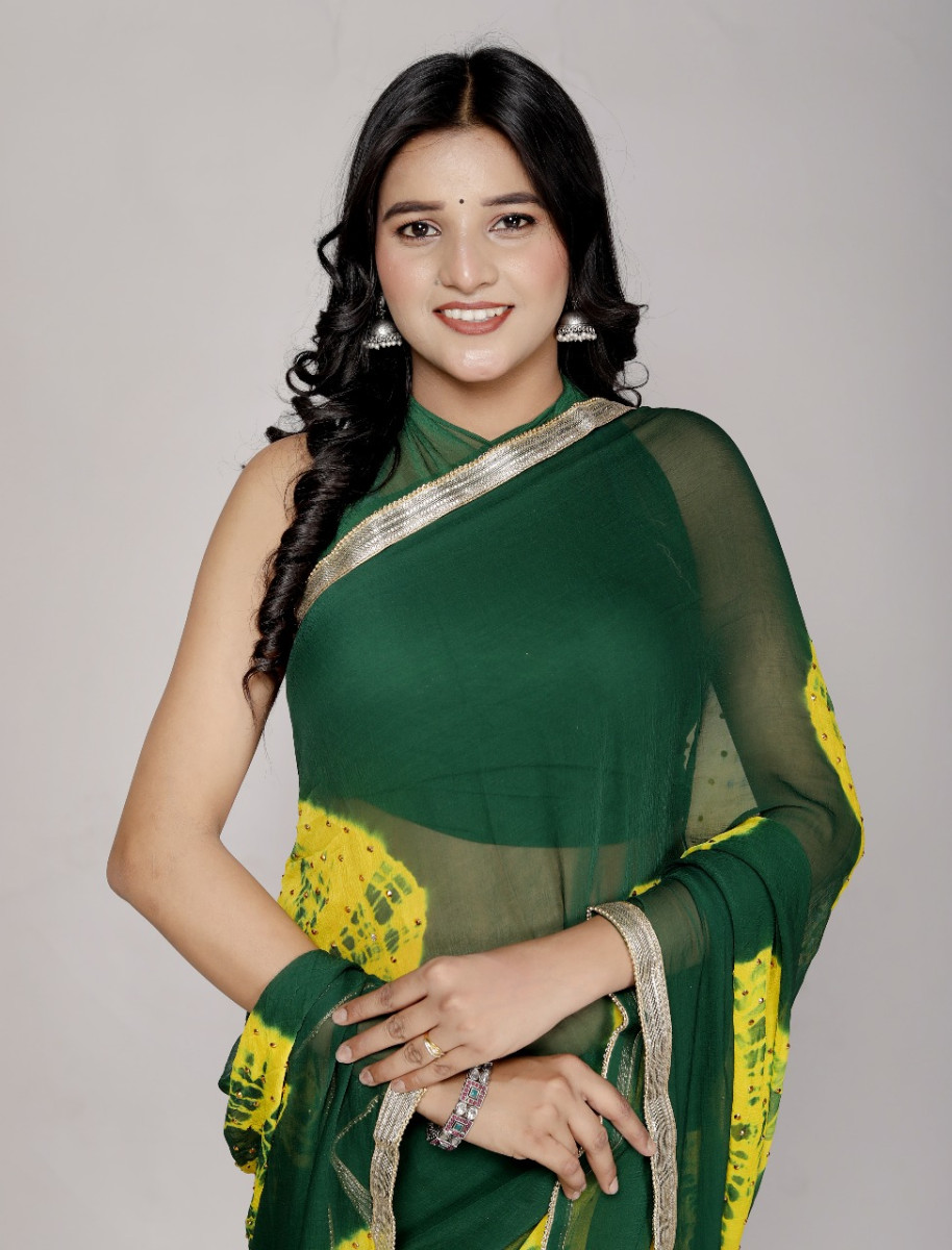 Chiffon Sarees for Women – Bandhani saree, Printed & Wedding Party Wear saree | Latest 2025 saree Collection, Green saree , Designer Saree For Wedding,, Perfect Sarees For Women Wedding , Sarees For F