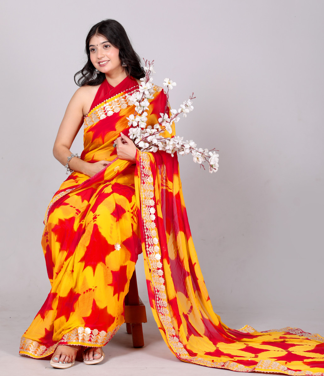 Chiffon Sarees for Women – Bandhani saree, Printed & Wedding Party Wear saree | Latest 2025 saree Collection, Green saree , Designer Saree For Wedding,, Perfect Sarees For Women Wedding , Sarees For F