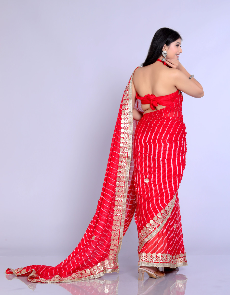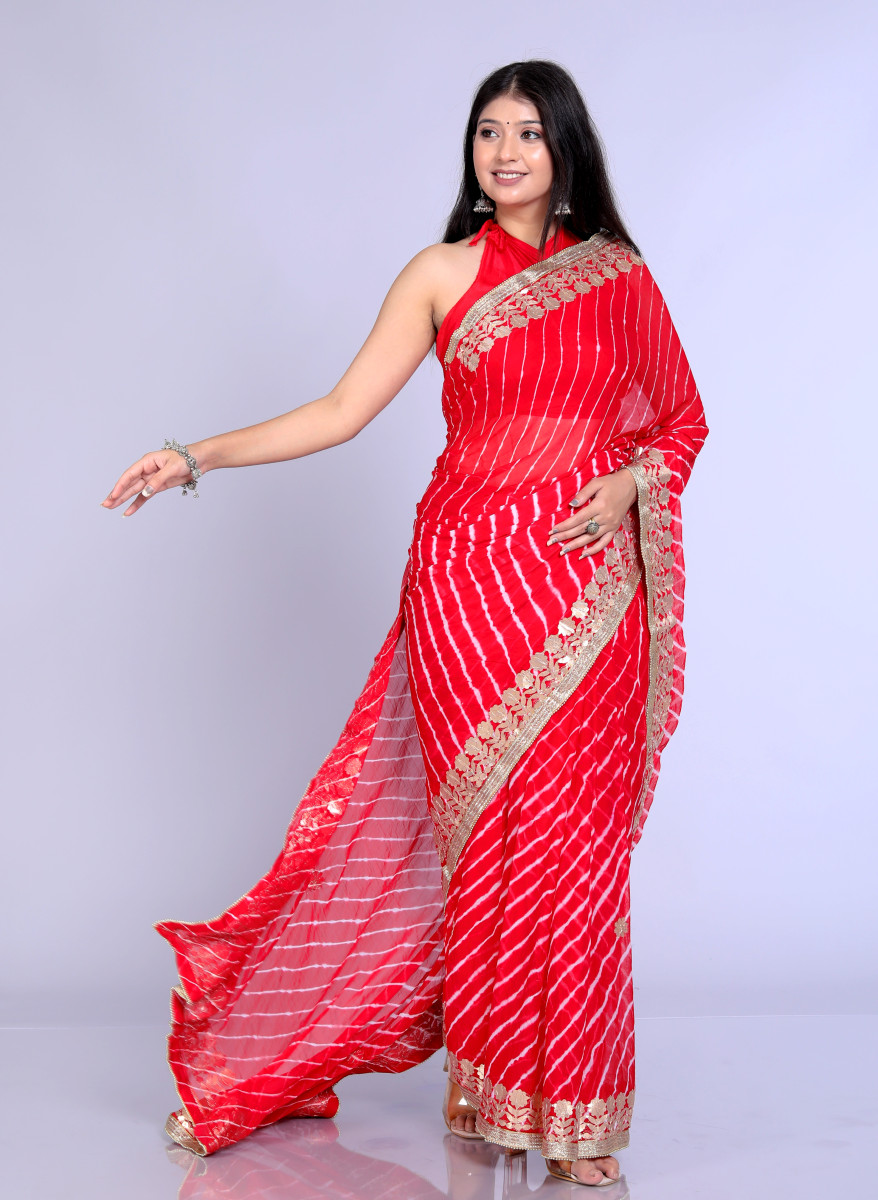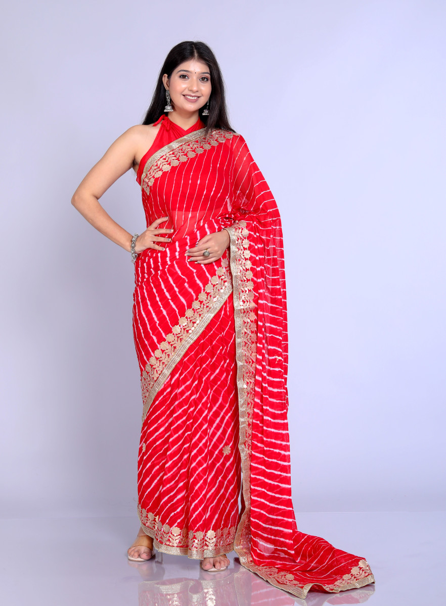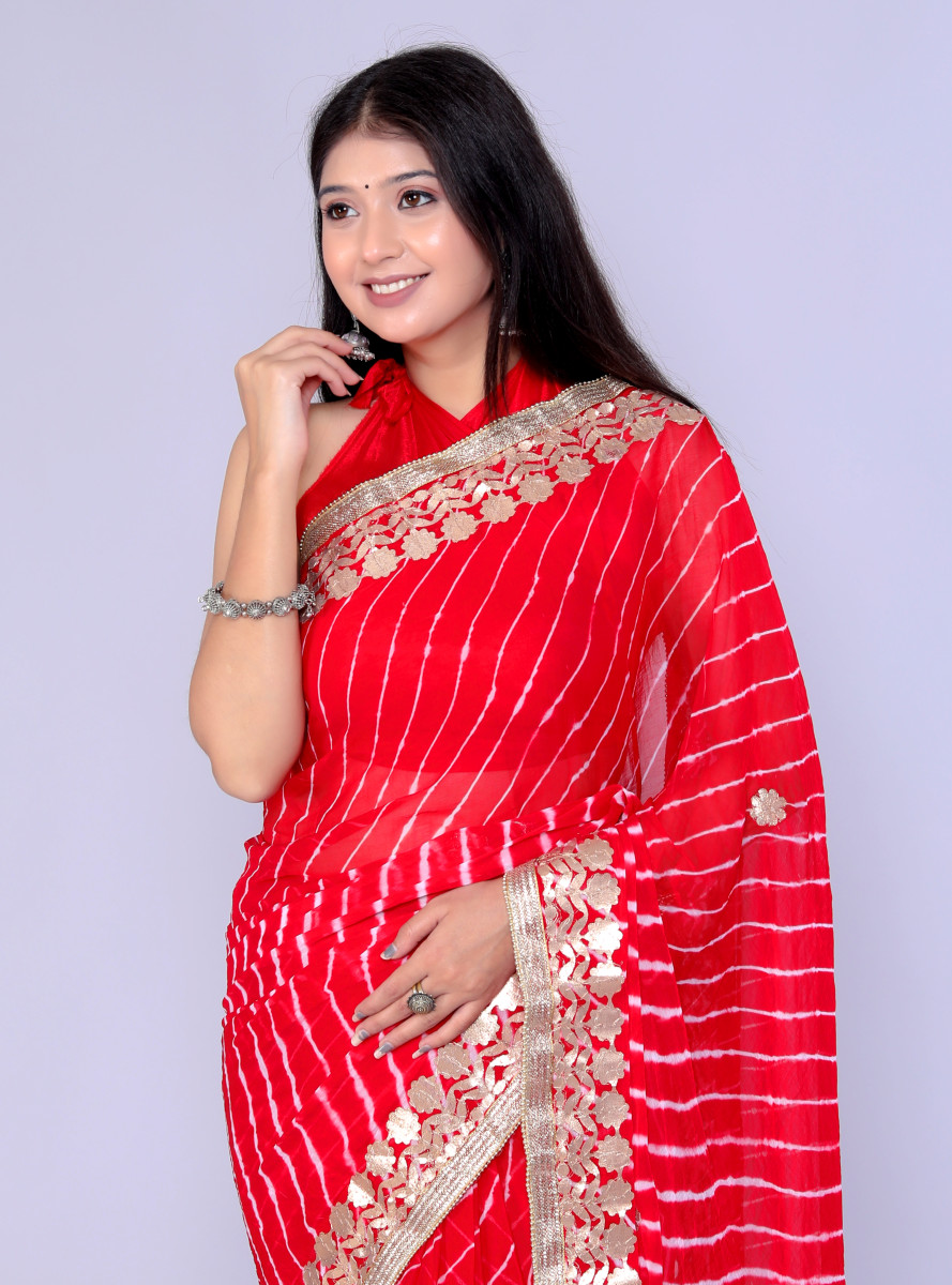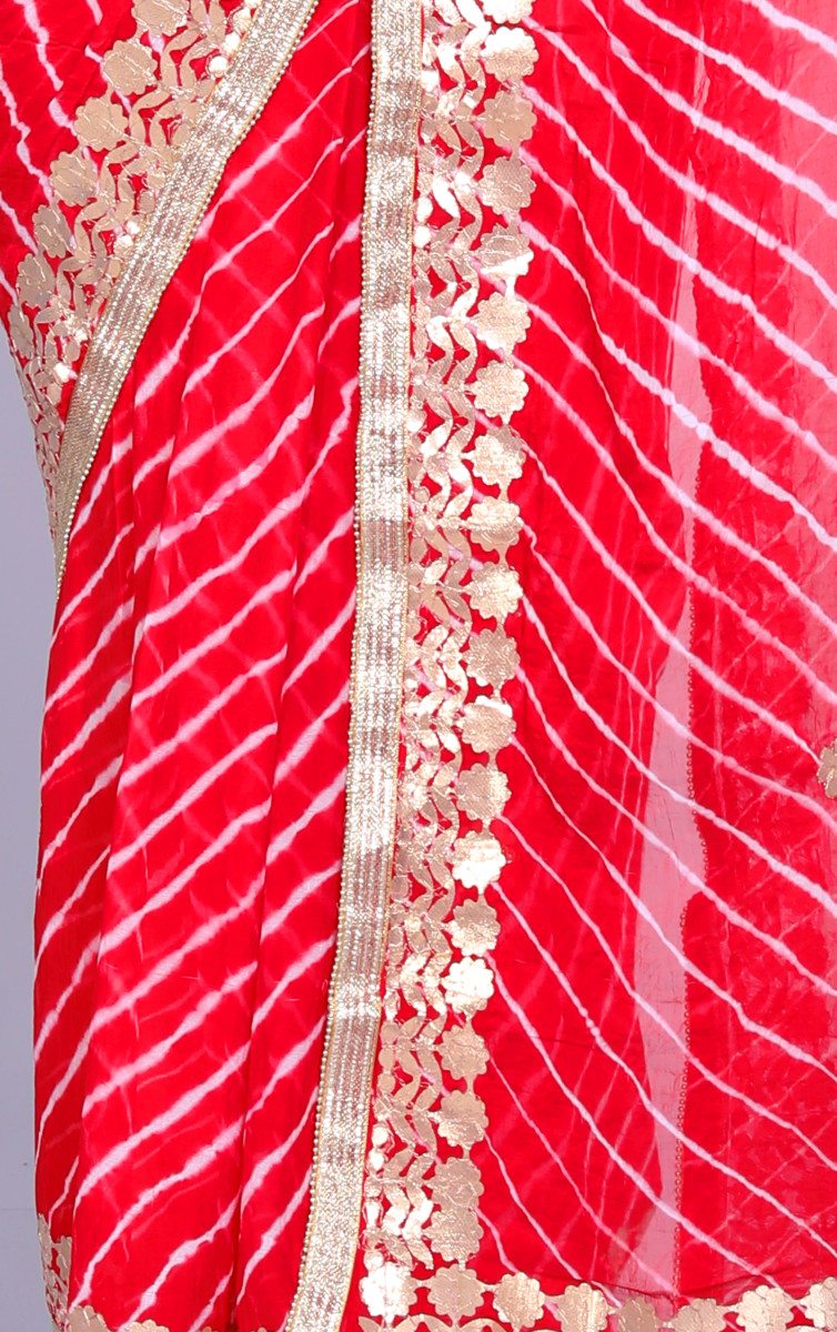 Pure Chiffon Gotta Patti Work Leheriya Designer Printed Sarees For Women