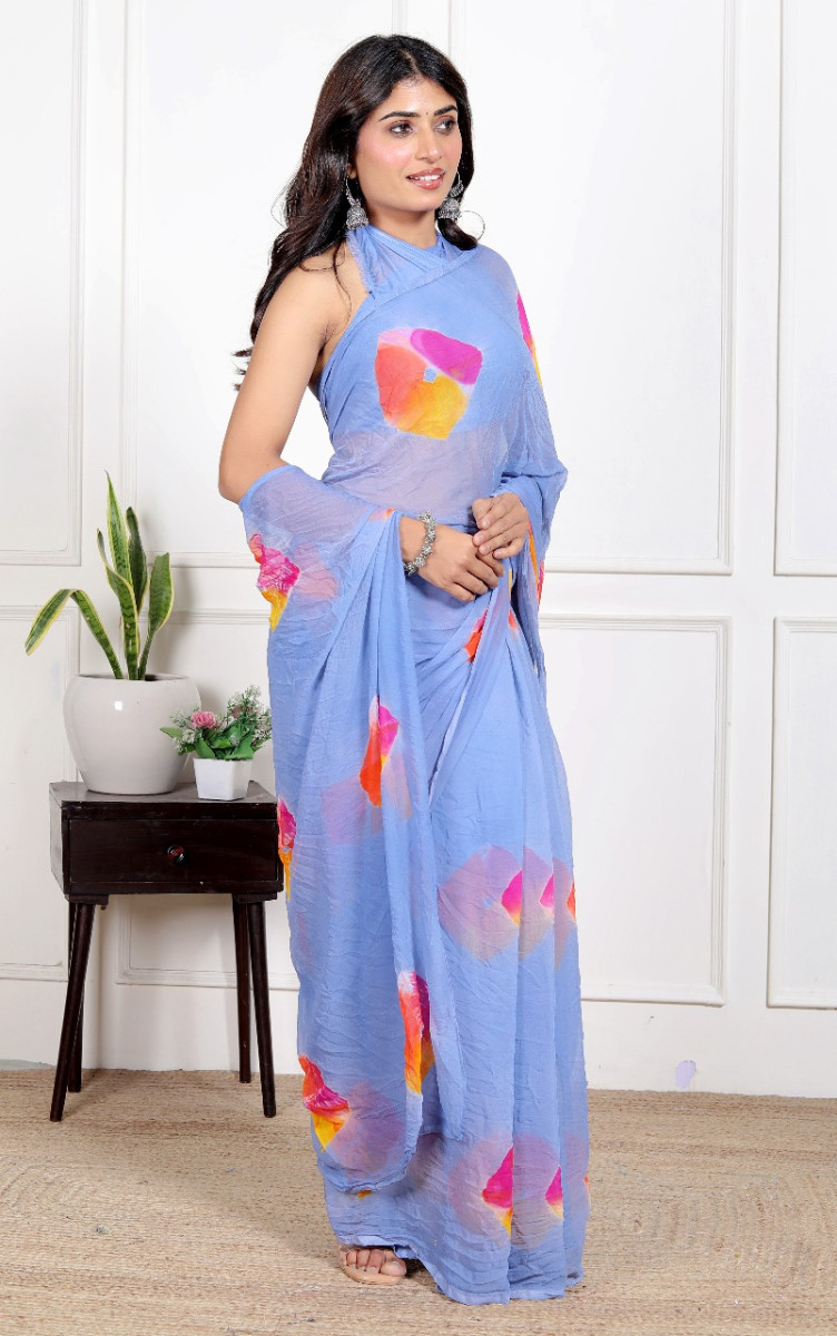 Pure Chiffon Printed saree bandhini Printed Sarees For Women