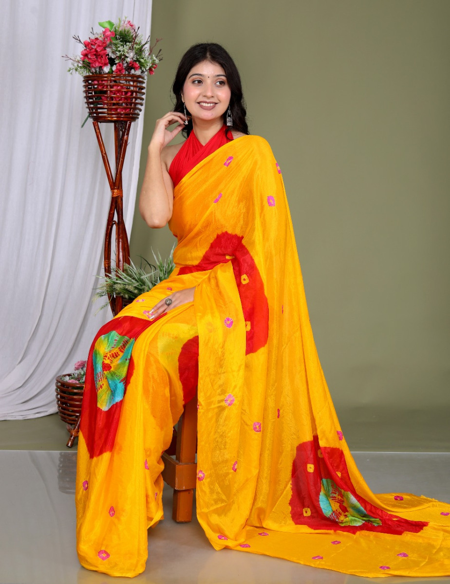 Shop elegant Pure Silk Bandhani Sarees for Women online at VLSTORE.IN. Featuring rich Rajasthani Bandhej prints, vibrant Jaipuri colors, and soft pure silk fabric, these sarees are perfect for weddings, farewell parties, festive days, and special occasions in 2025. Designed for comfort and style, each saree blends Bollywood-inspired fashion with traditional craftsmanship. Whether you're seeking a party wear saree, wedding saree, or a designer printed saree, this collection is a must-have. Add timeless grace to your ethnic wardrobe with the latest Bandhani silk sarees online. Shop premium quality, trend-forward designs now – only at VLSTORE.IN.