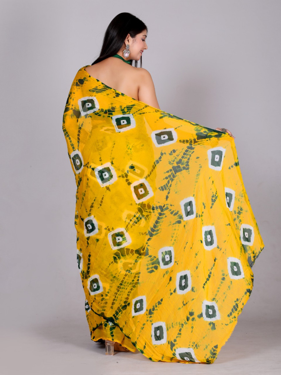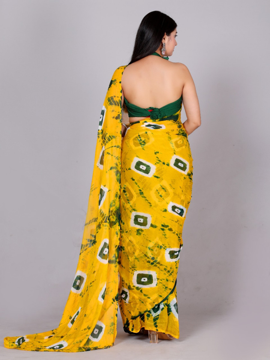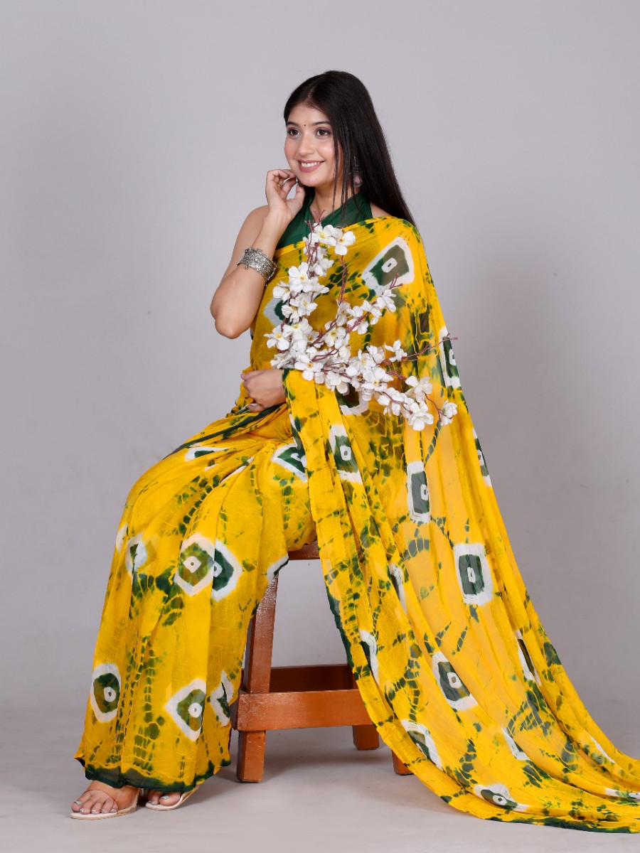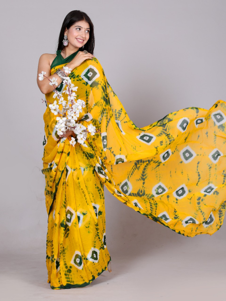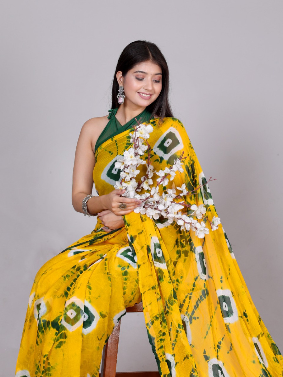 Bandhani Printed Chiffon Printed Yellow sarees For Women