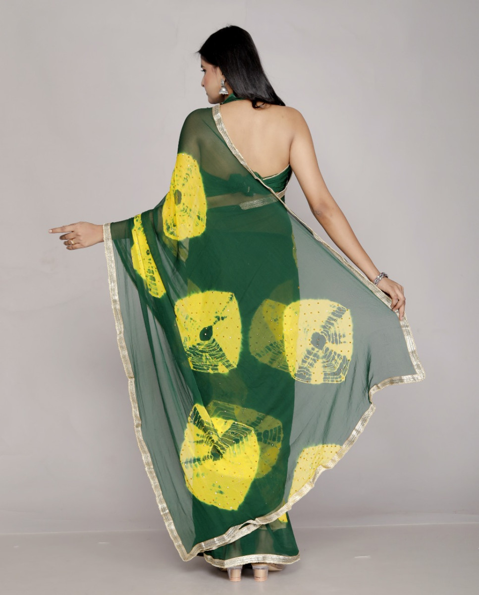 Chiffon Sarees for Women – Bandhani saree, Printed & Wedding Party Wear saree | Latest 2025 saree Collection, Green saree , Designer Saree For Wedding,, Perfect Sarees For Women Wedding , Sarees For F