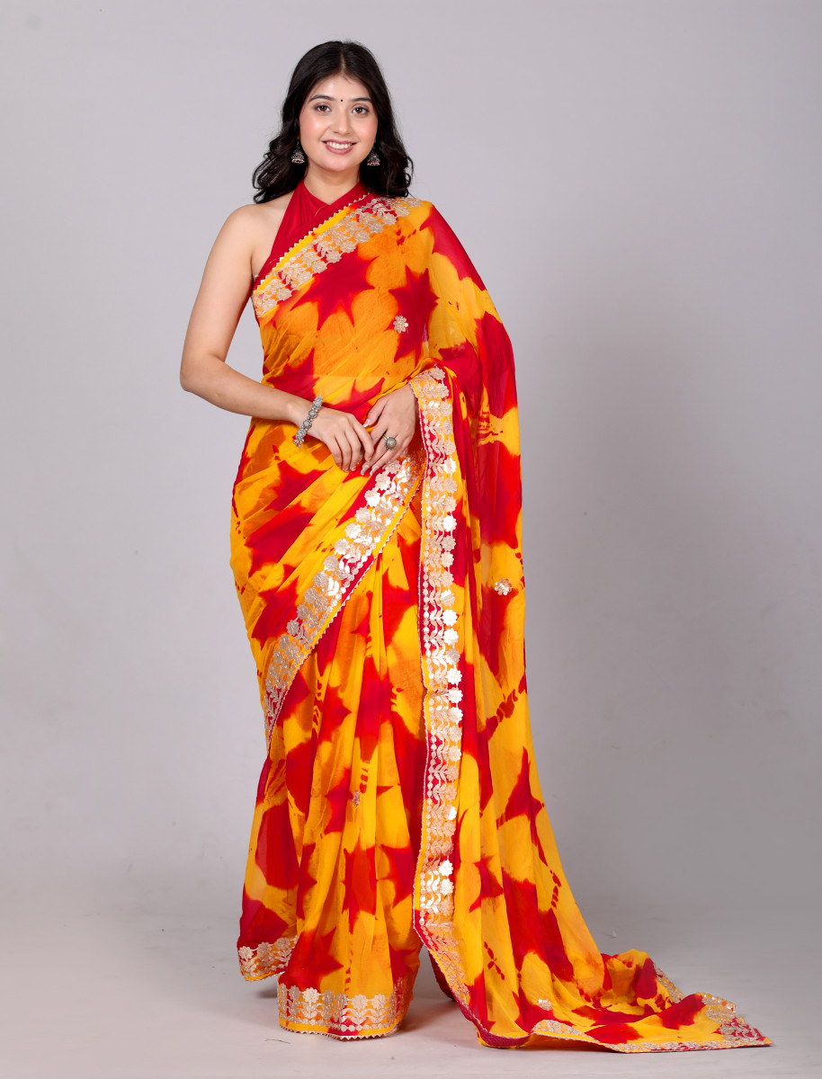 Chiffon Sarees for Women – Bandhani saree, Printed & Wedding Party Wear saree | Latest 2025 saree Collection, Green saree , Designer Saree For Wedding,, Perfect Sarees For Women Wedding , Sarees For F