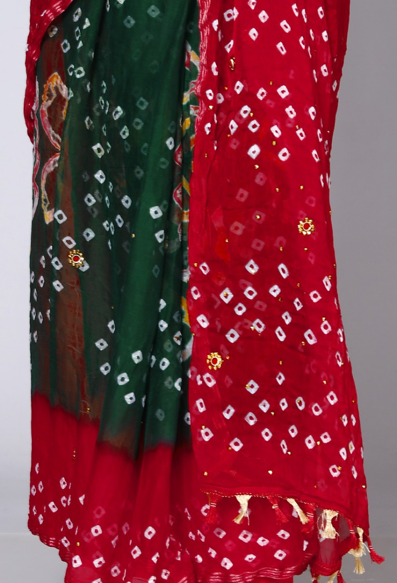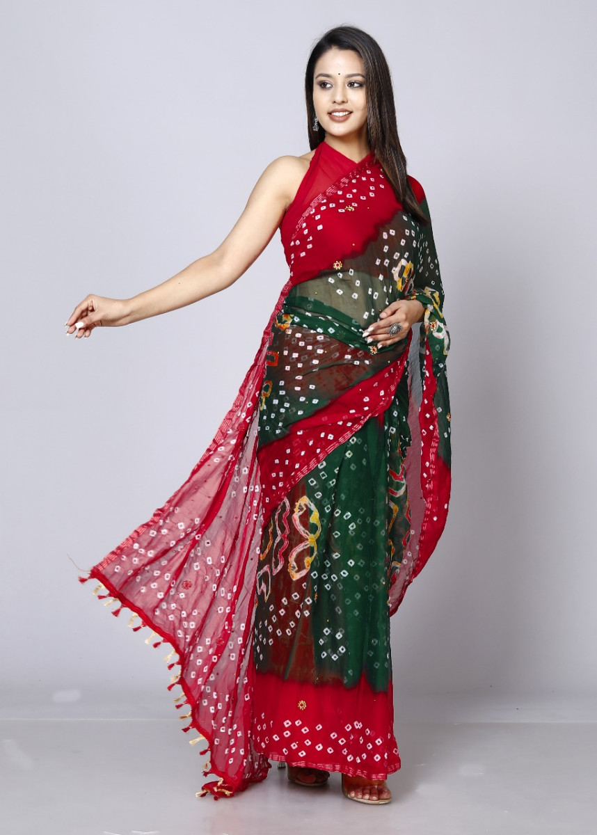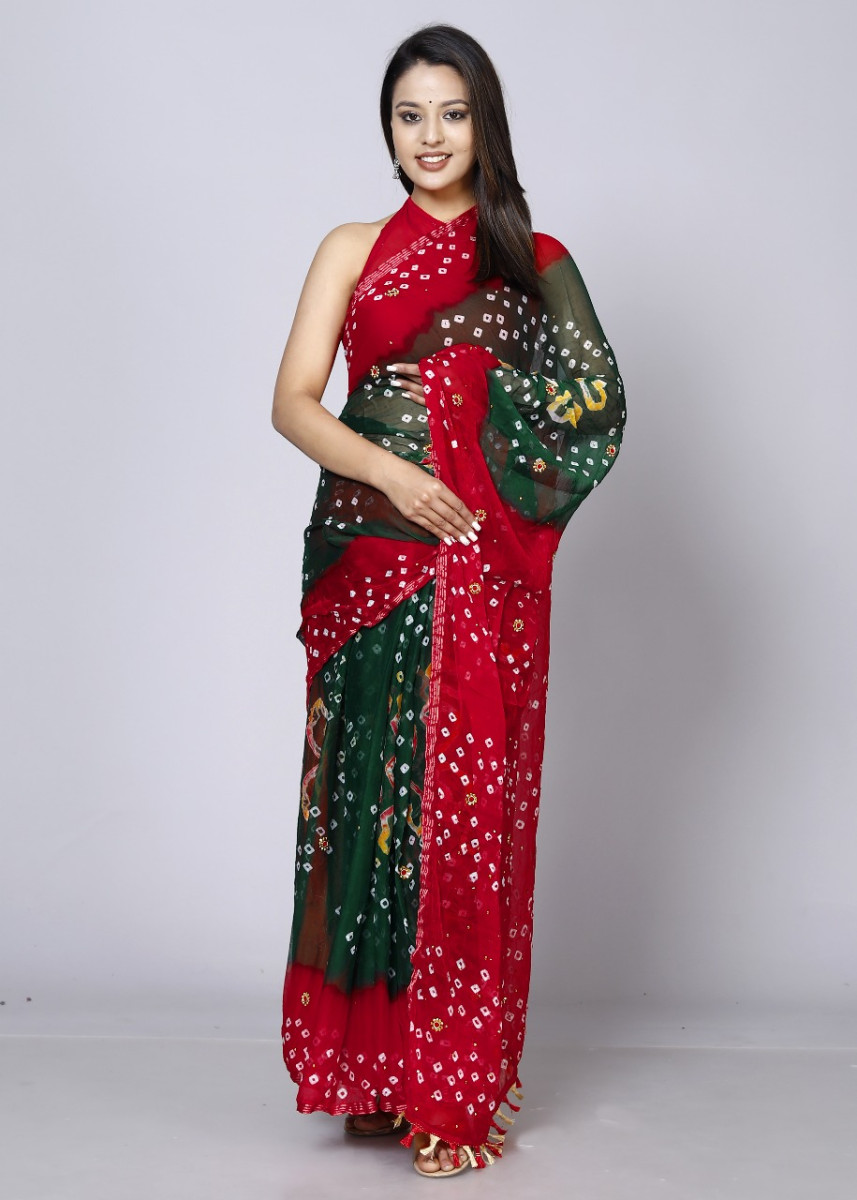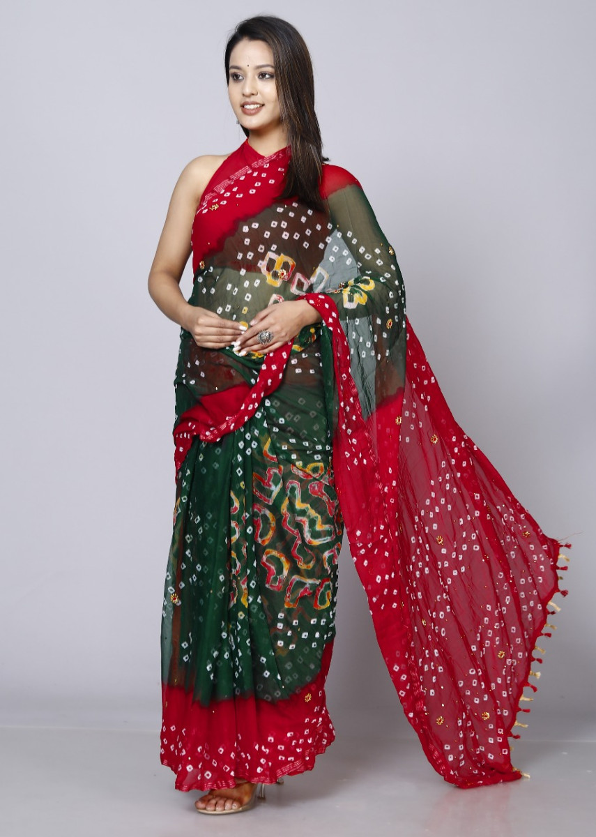 Pure Chiffon Bandhini Stone Work Printed Work Sarees For Women