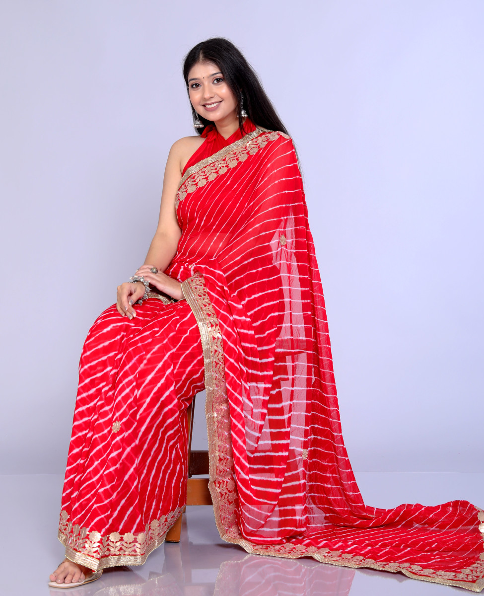 Pure Chiffon Gotta Patti Work Leheriya Designer Printed Sarees For Women