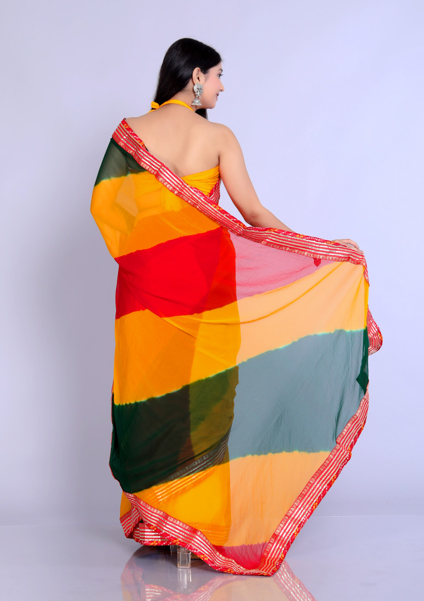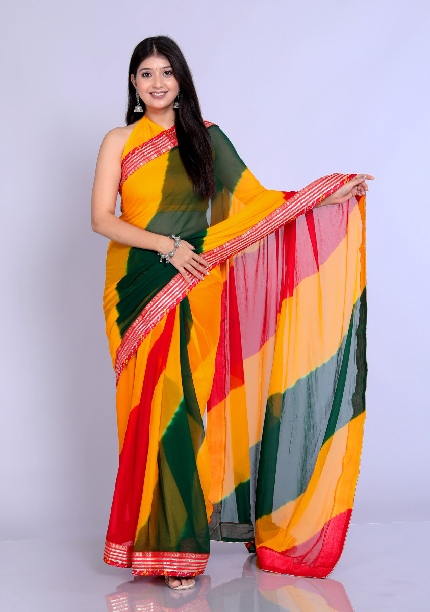 Pure Chiffon Leheriya Saree for Women – Bollywood Style Printed Lehaiya Saree with Gotta Border | Party, Wedding & Festive Wear