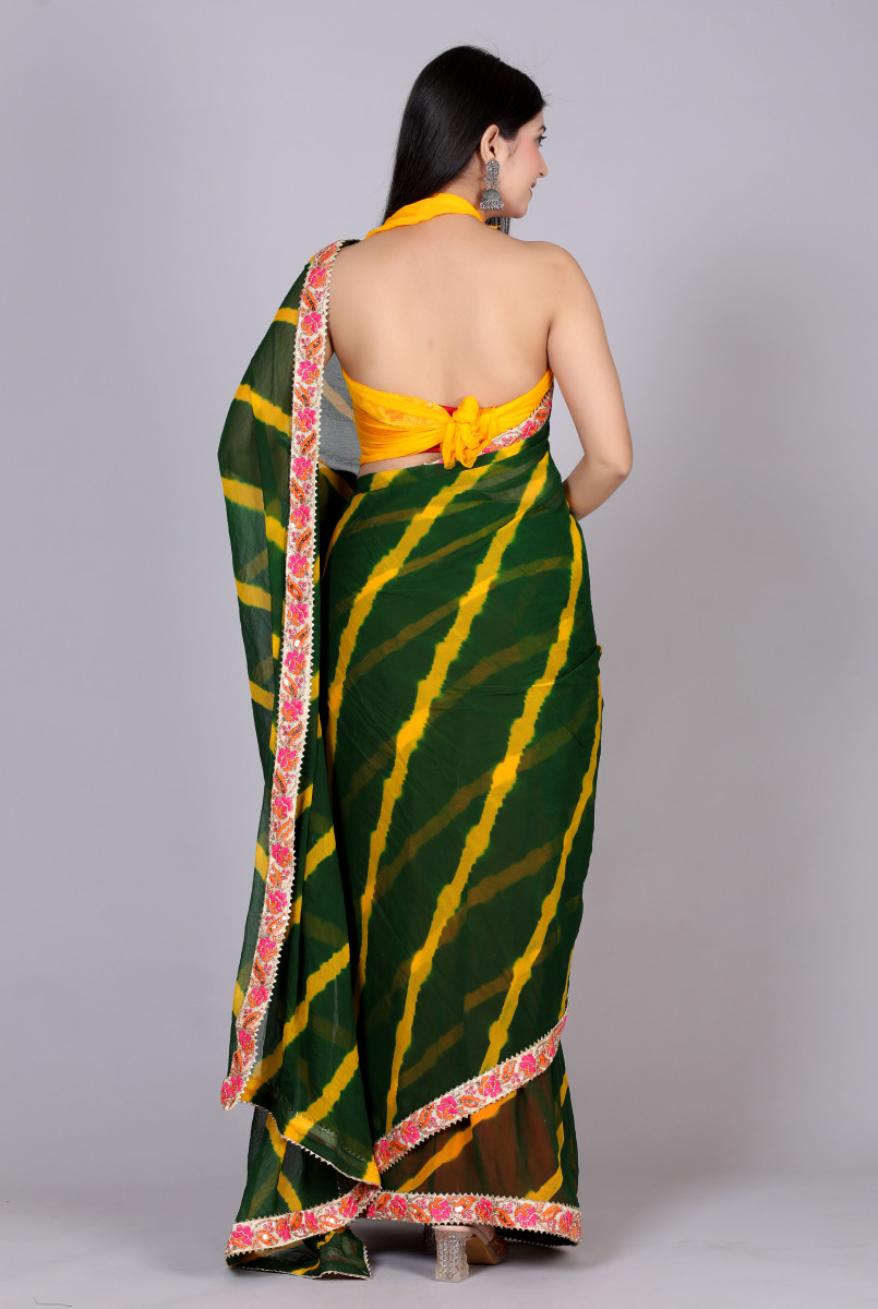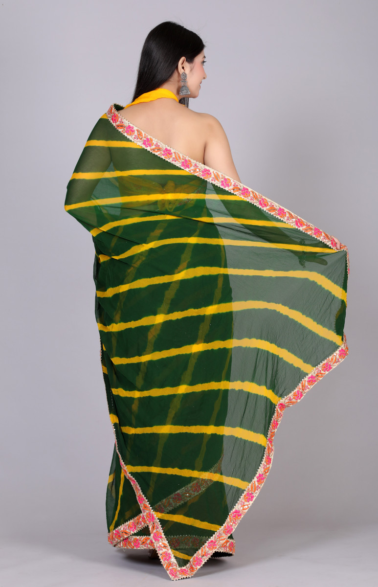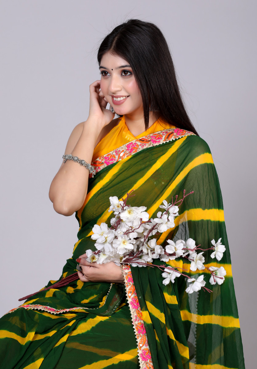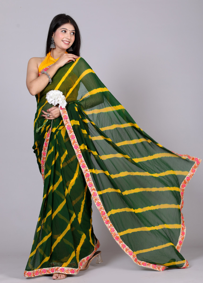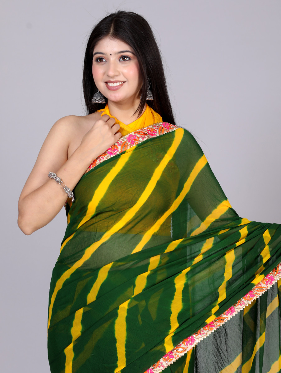 Pure Chiffon Leheriya Saree for Women – Bollywood Style Printed Lehariya Saree with Embroidered Border | Party, Wedding & Festive Wear