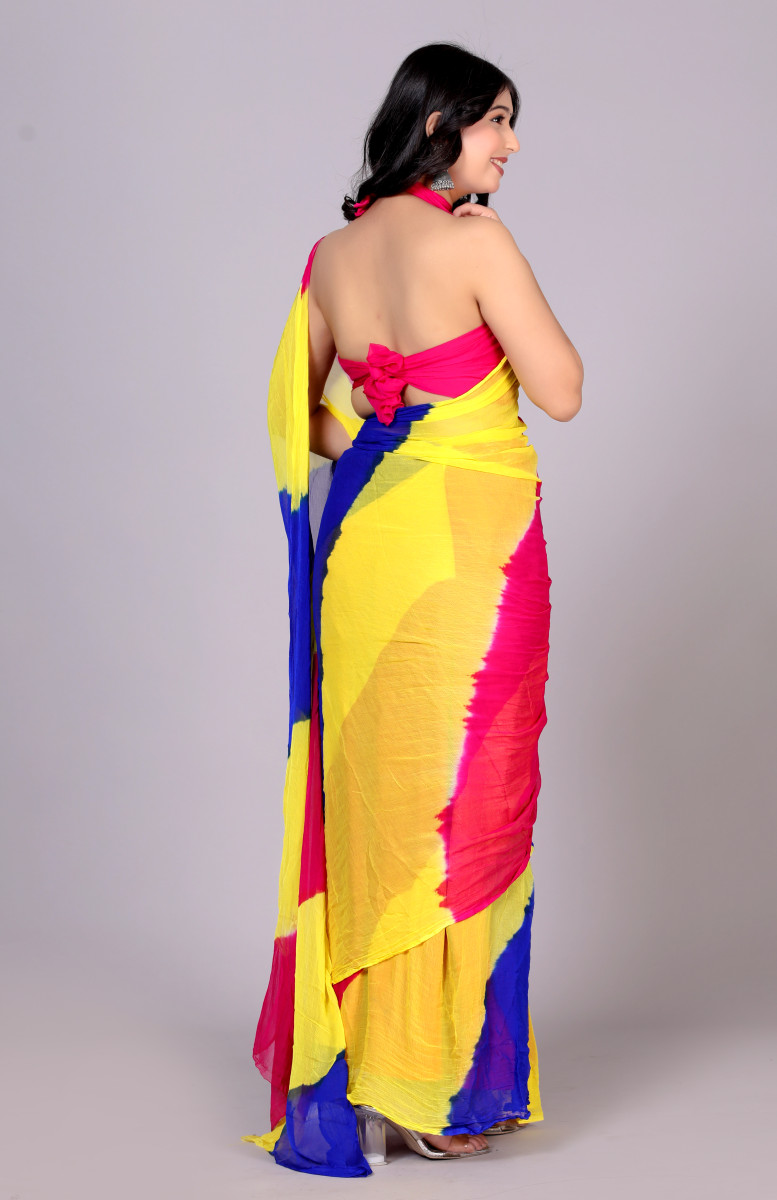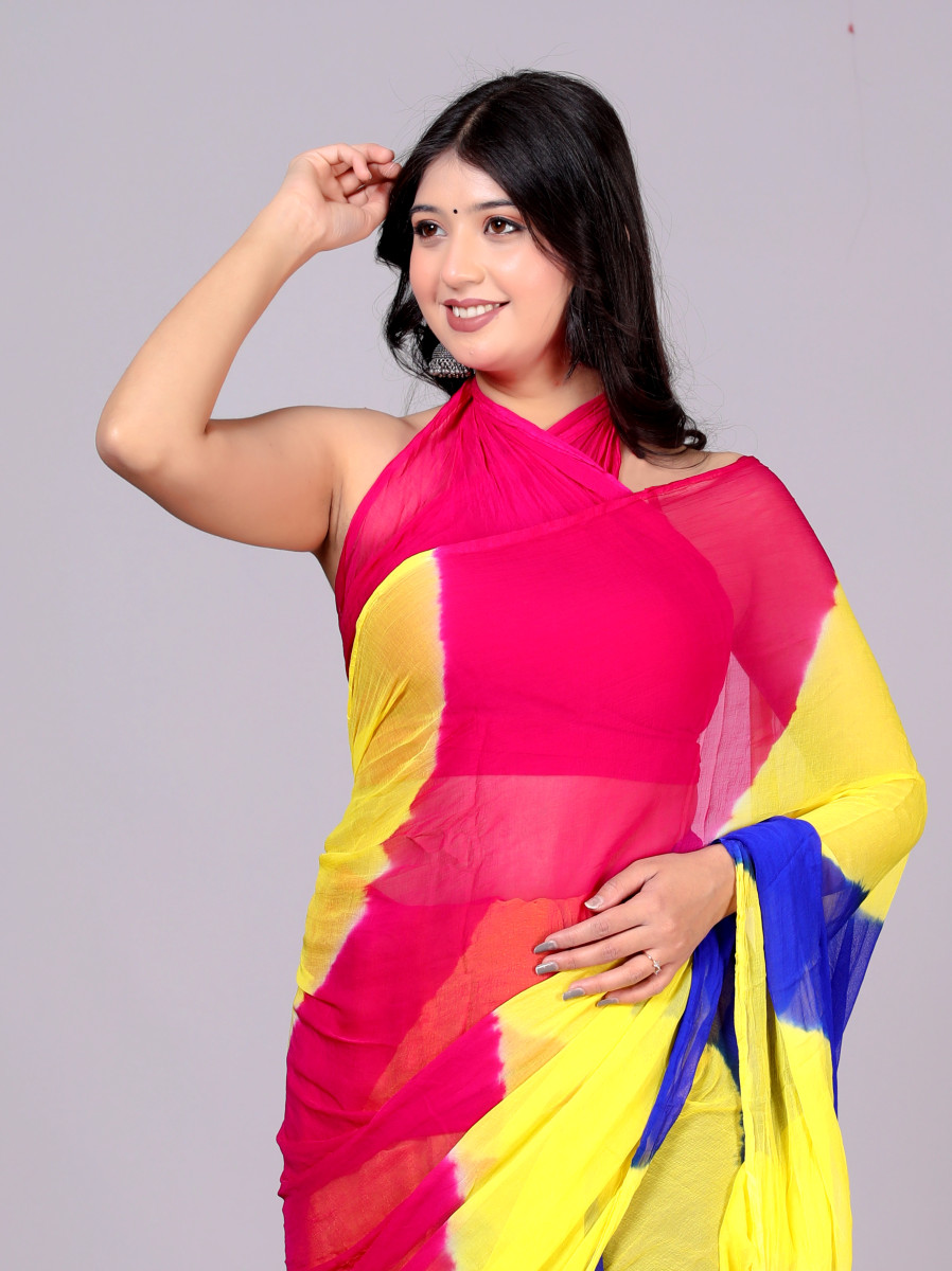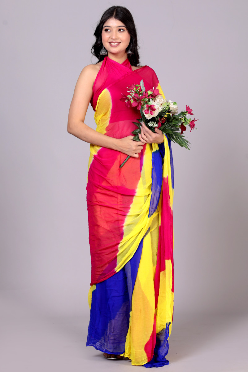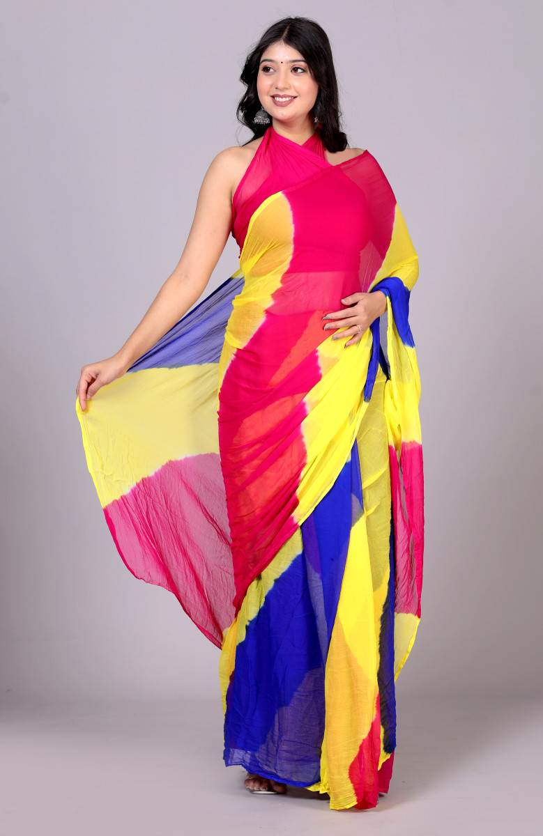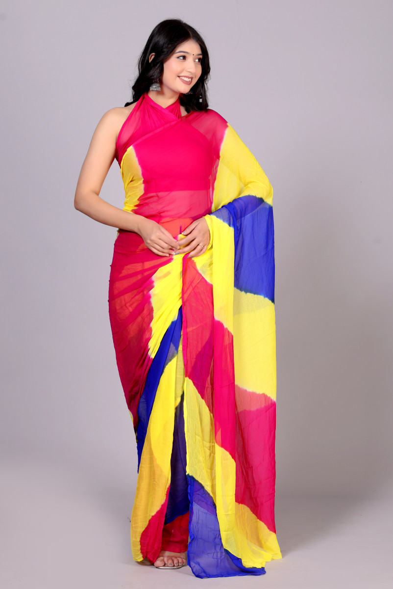 Pure Chiffon Leheriya Saree for Women – Multicolor Bollywood Printed Saree for Wedding, Party, Festive & Farewell | Traditional Designer Saree