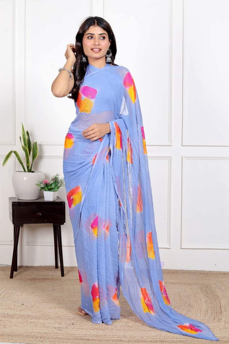 Pure Chiffon Printed saree bandhini Printed Sarees For Women