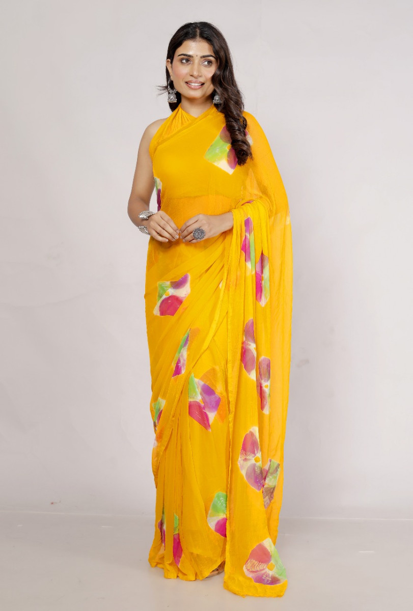 Pure Chiffon Printed saree bandhini Printed Sarees For Women