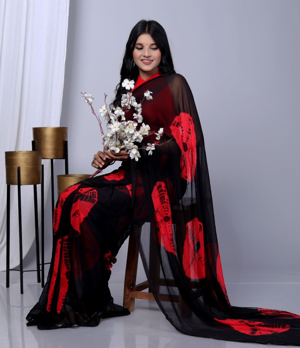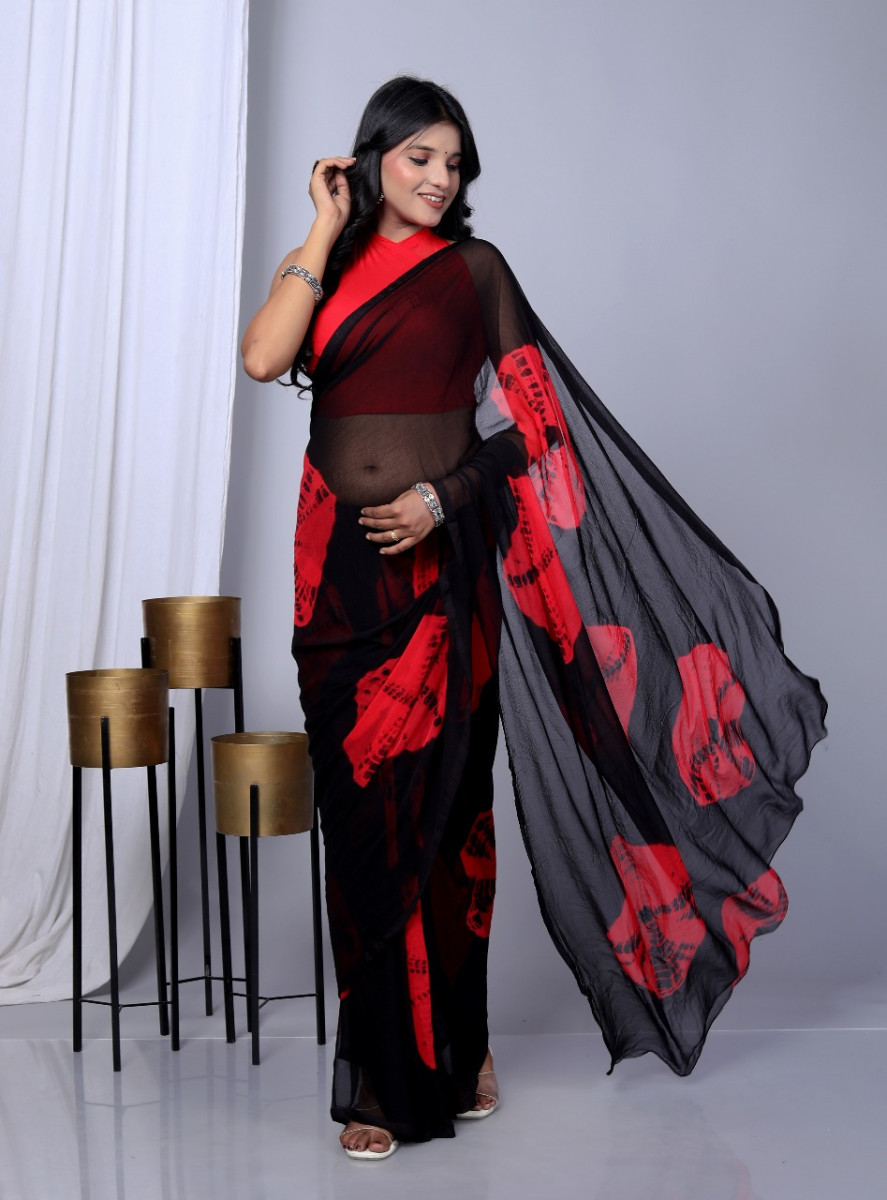 Pure Chiffon Trendy Checked bandhini Chiffon Sarees For Women
