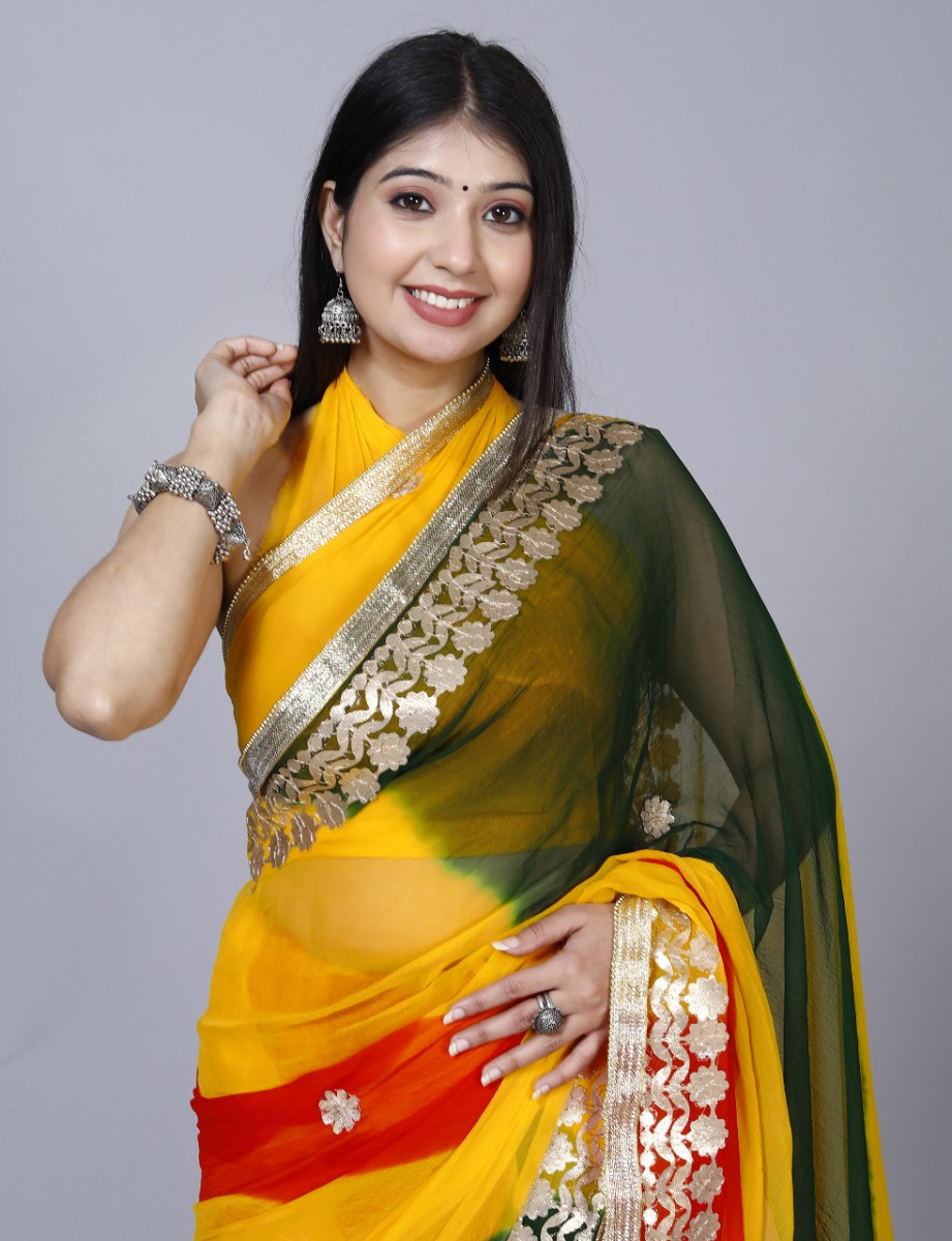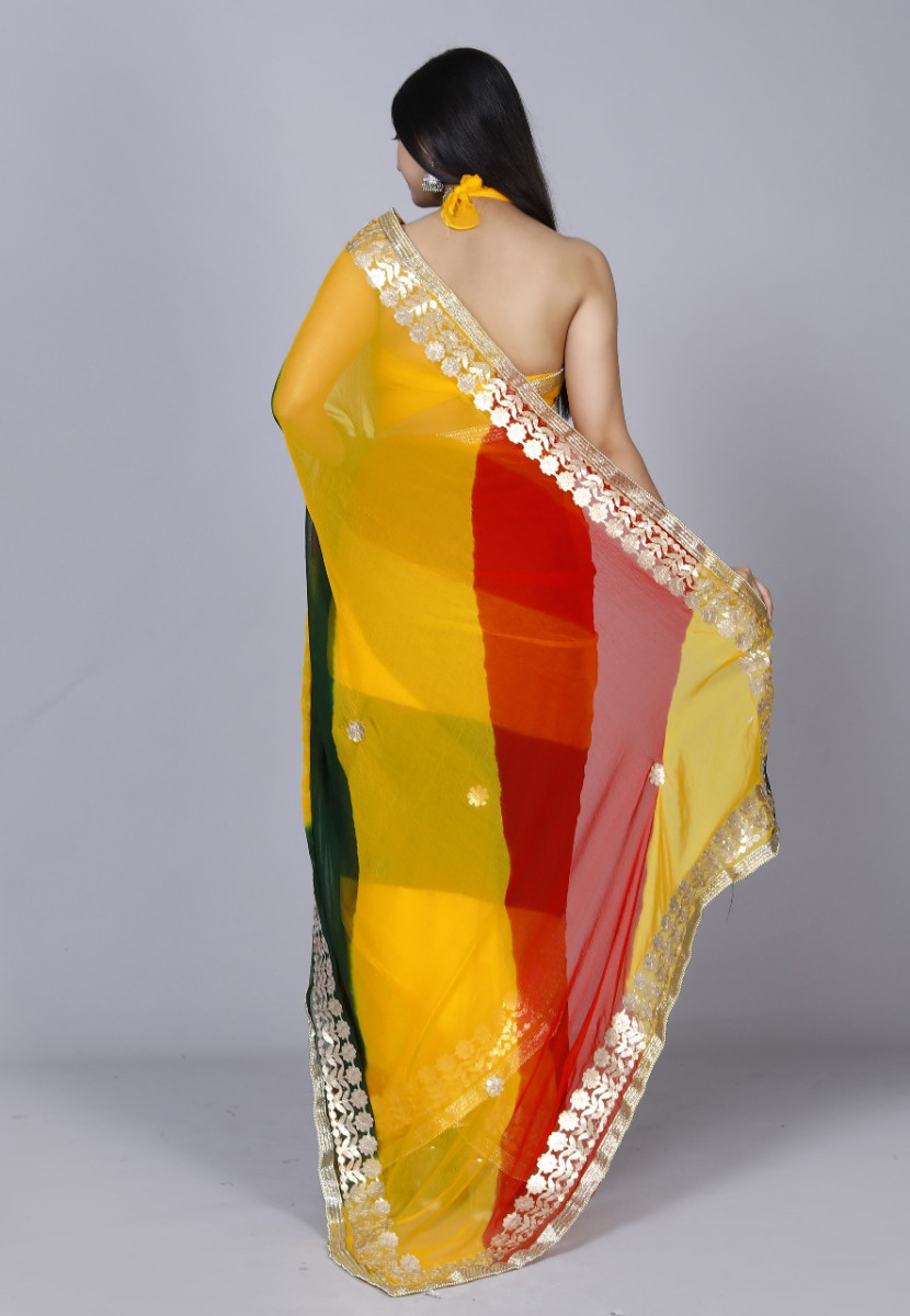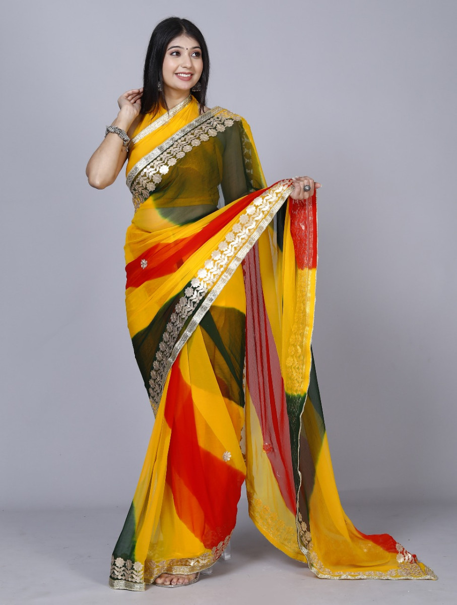Trendy Printed Printed Bandhini Gotta work Printed Work Sarees For Women