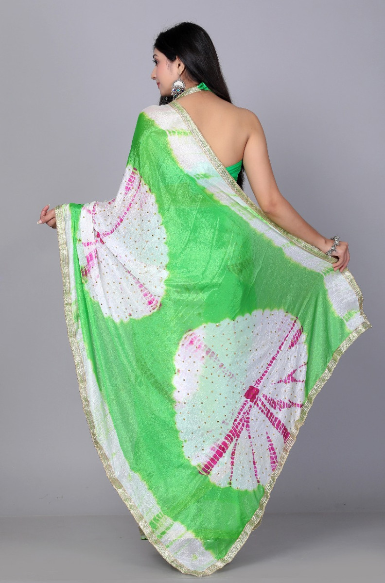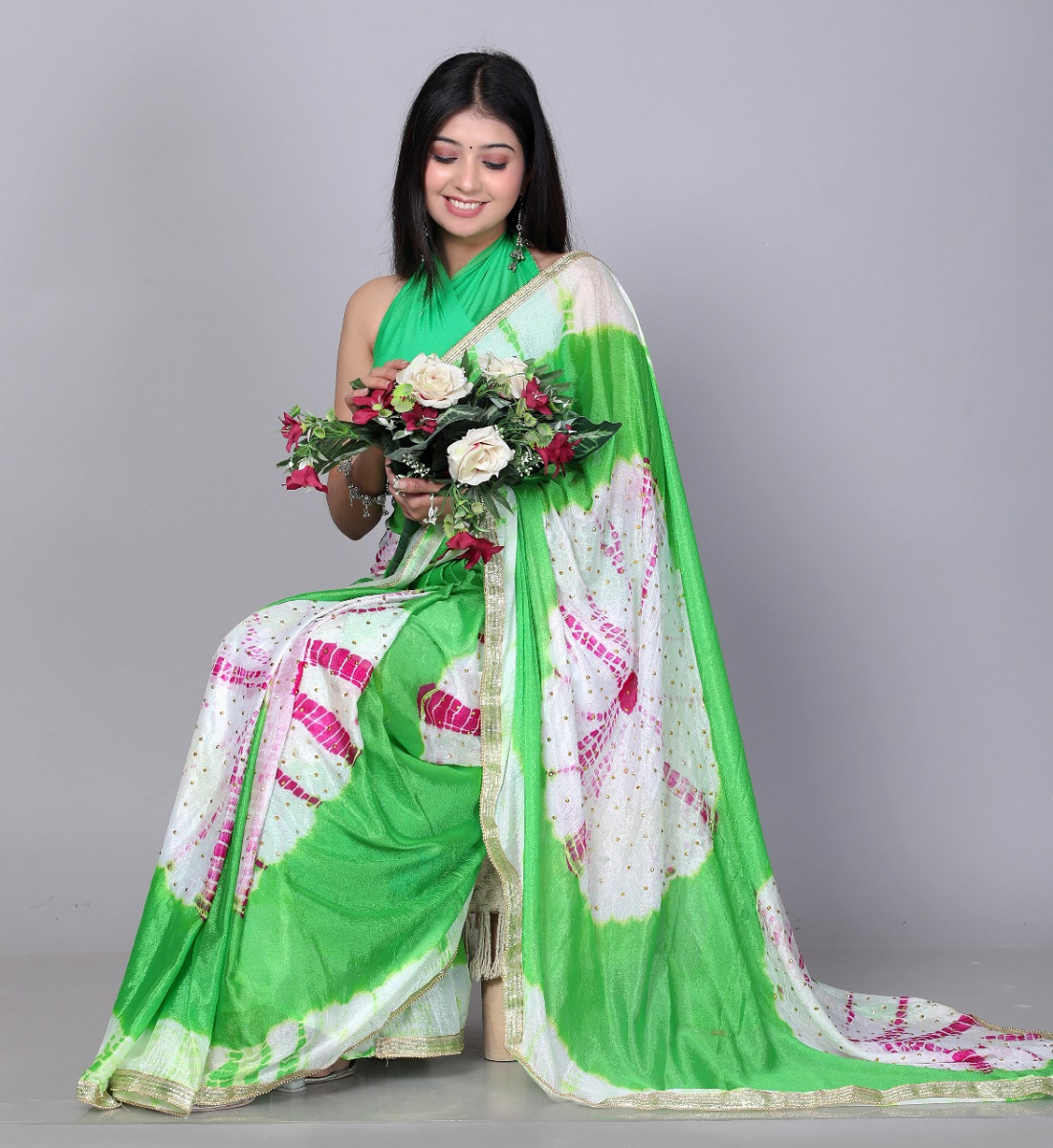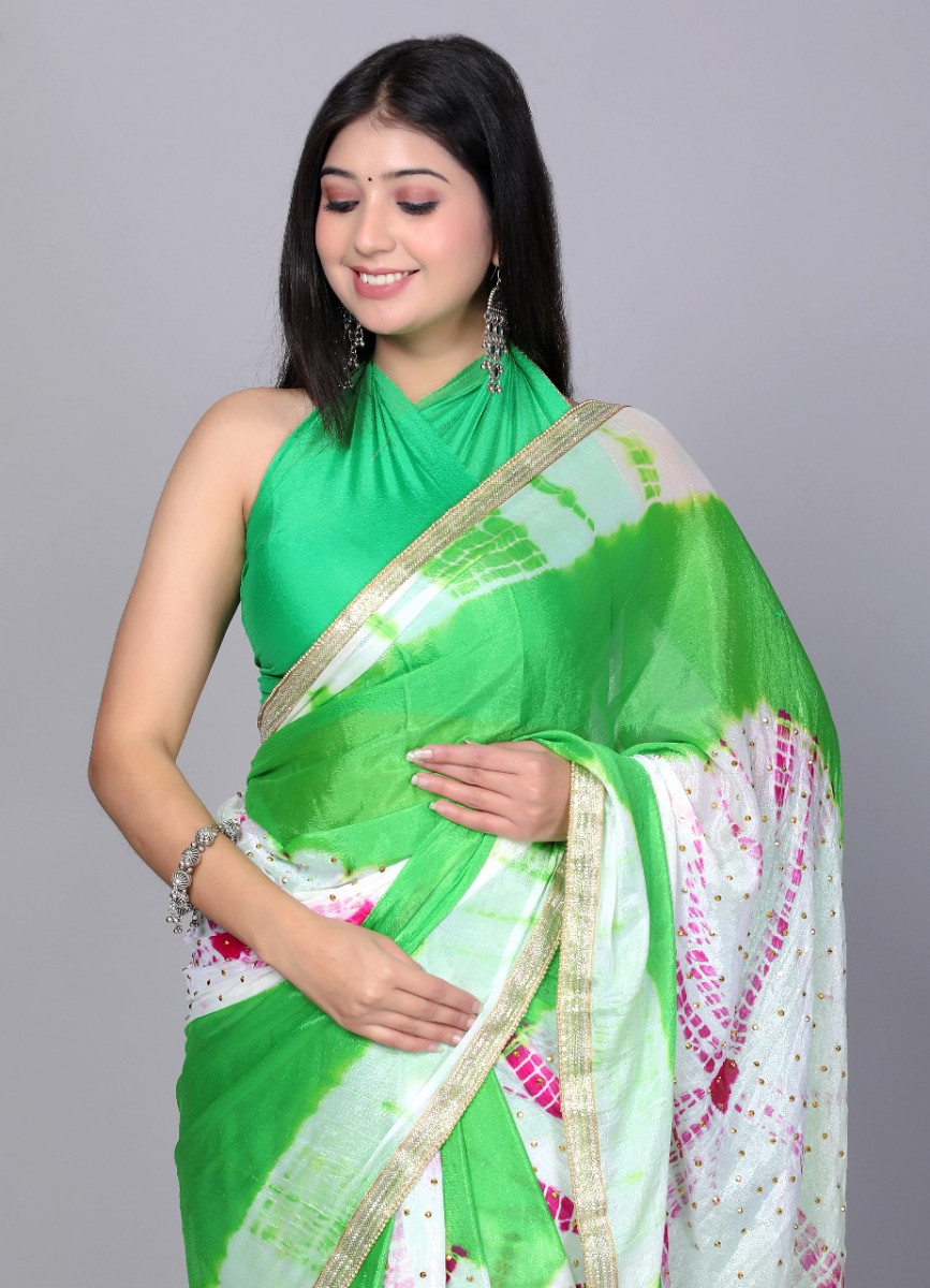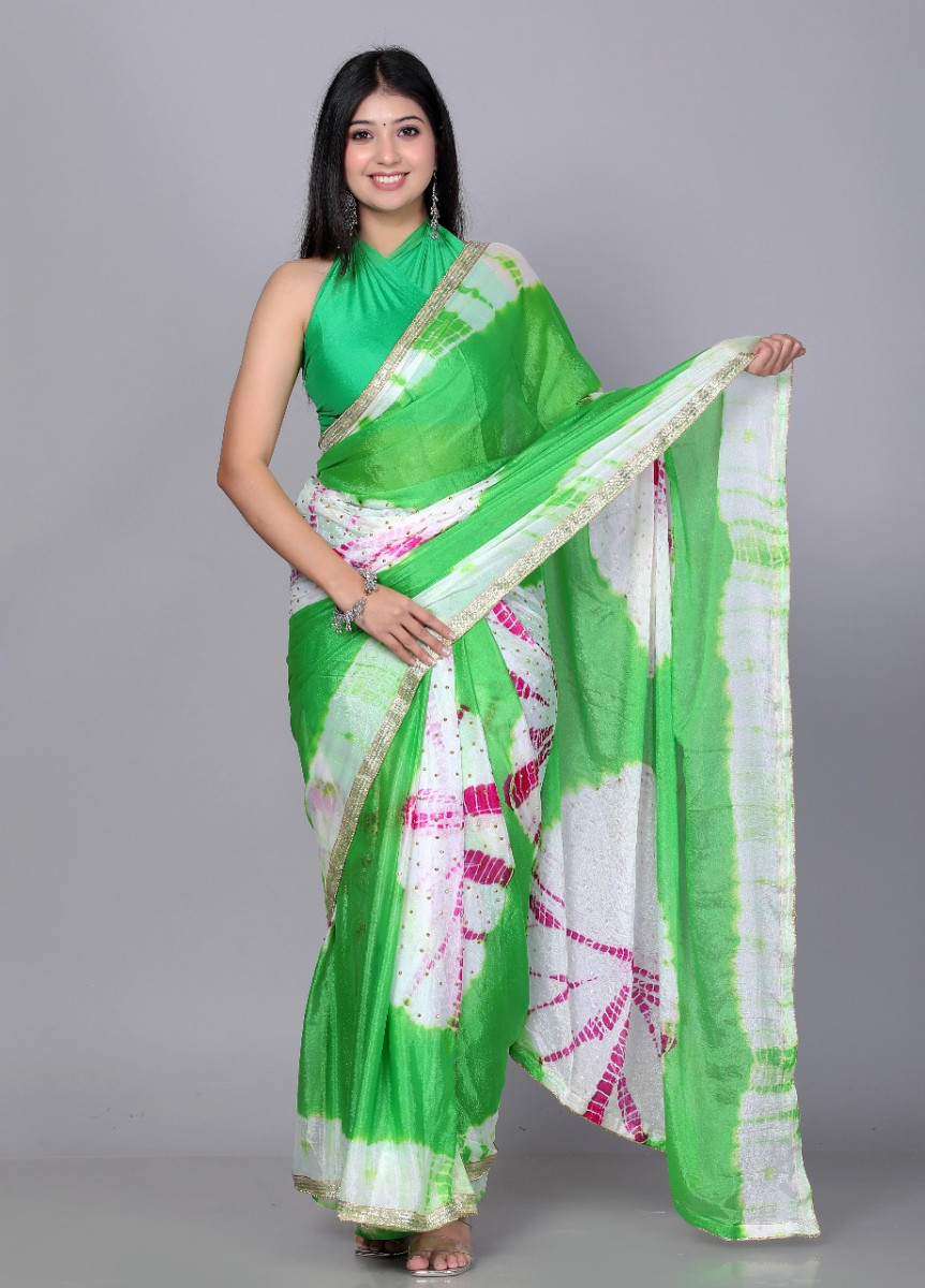Trendy Printed Printed Shibori Printed Stone Work Sarees For Women